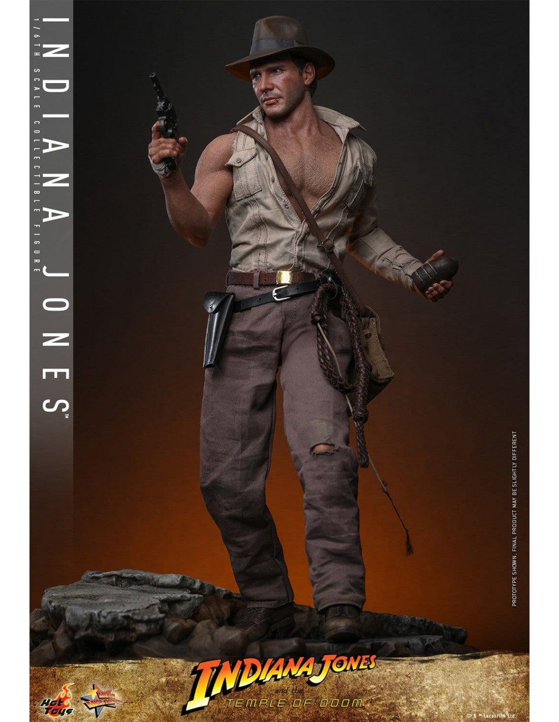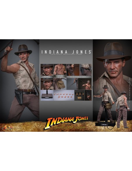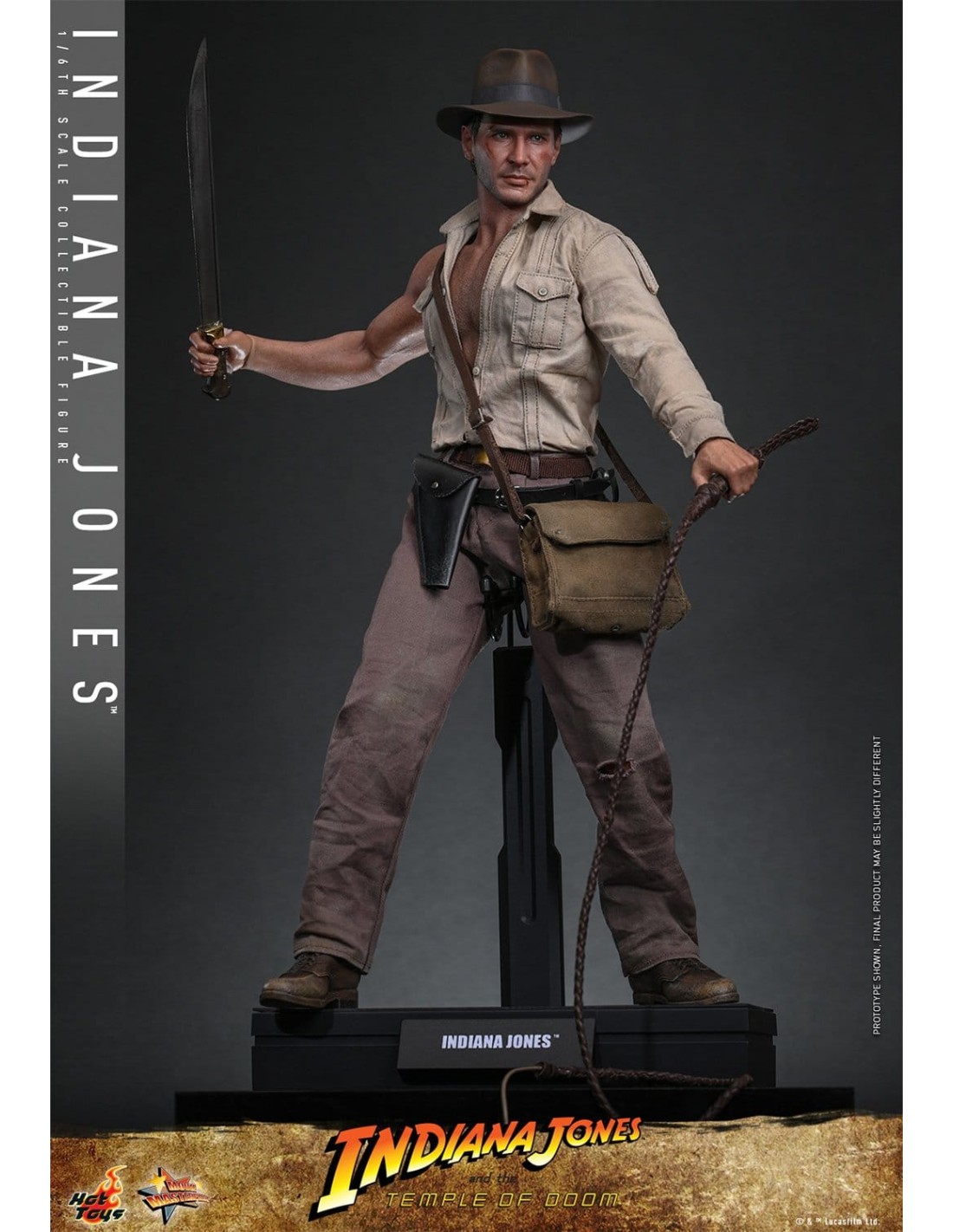 Il costume è finemente confezionato per replicare il suo aspetto sullo schermo, con camicia a manica singola e pantaloni con effetti di usura e usura per un look rovinato dalla battaglia. Include una cintura in tessuto, una cintura in vera pelle con fondina e un paio di stivali. Inoltre, è dotato di un cordino rosso per il suo look a torso nudo. La figura è dotata di una serie di armi e accessori, tra cui una frusta in vera pelle, una lancia, un machete, un revolver, una borsa a tracolla, un manoscritto sanscrito, due set di Pietre Sankara (sia in stato dormiente che attivato) e un piedistallo.