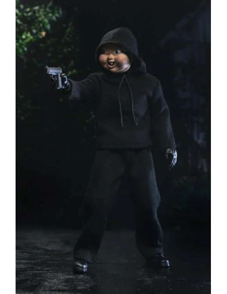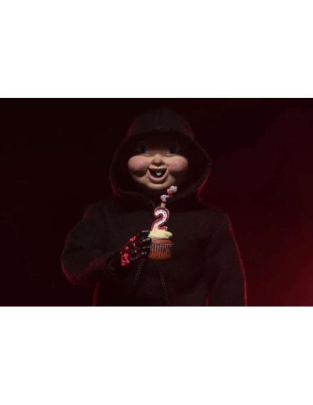 Non c’è nulla di carino o innocente in questo spietato assassino. Vestita con abbigliamento in tessuto sartoriale ispirato alle linee di giocattoli vintage, questa action figure completamente articolata in scala 8 pollici include maschere, teste e mani intercambiabili, coltelli da cucina, mazza da baseball, mazza, cupcake di compleanno e pistola. Fornita in una confezione con finestra pensata per i collezionisti.