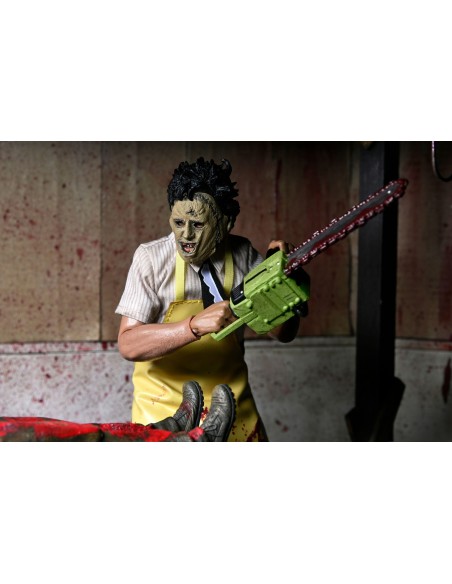 Dal classico film del 1974 di Tobe Hooper, Non aprite quella porta, arriva una action figure di Leatherface vestita, aggiornata e migliorata, da NECA! Il leggendario assassino indossa abiti in tessuto su misura, in omaggio alle action figure vestite in stile retrò del passato.