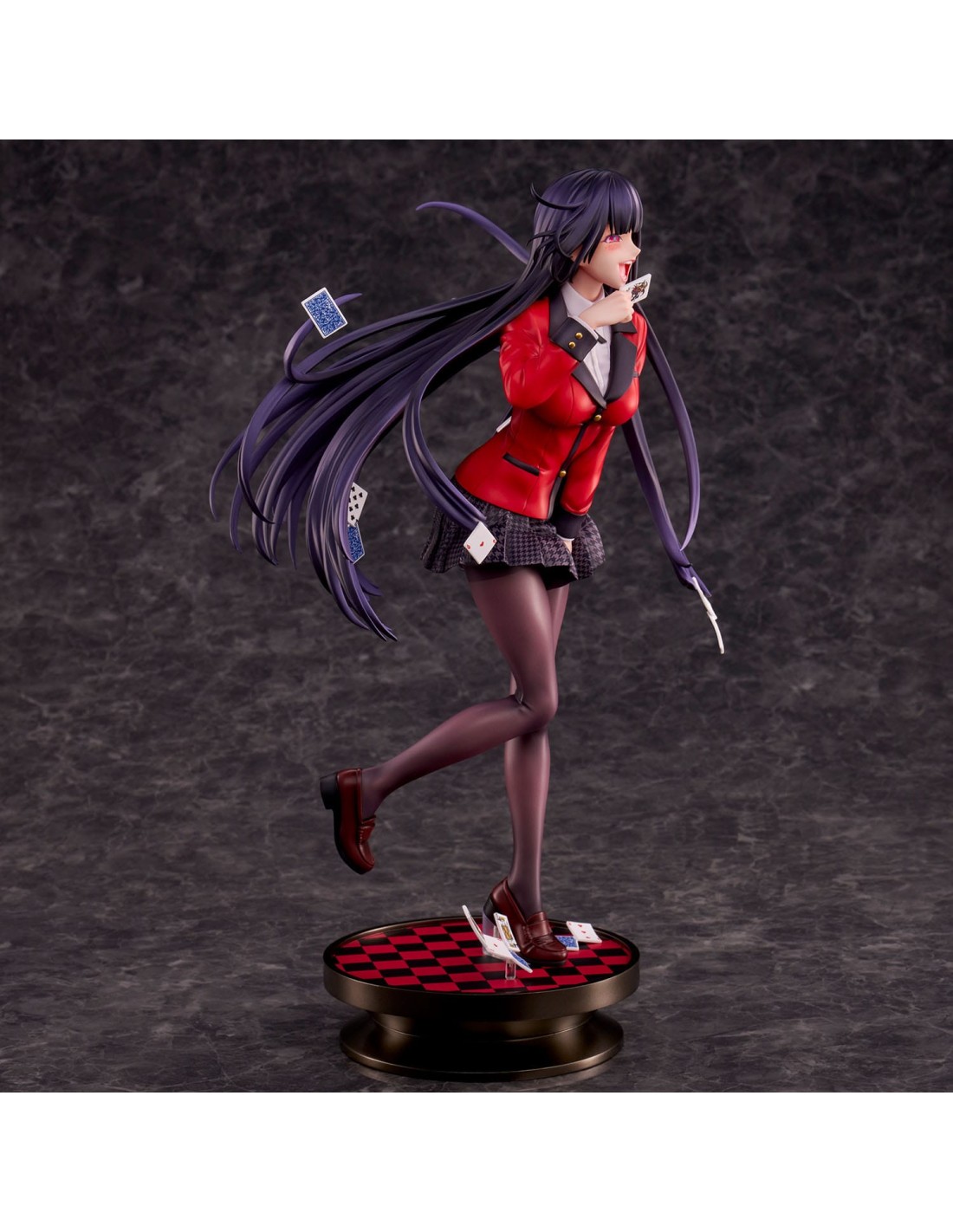 Questo pezzo sicuro di sé è meticolosamente realizzato con attenzione ai dettagli e all'equilibrio in ogni centimetro della figura, come la sua posa dinamica e le carte da gioco che danzano nell'aria. I capelli di Yumeko sono sfumati verso le punte e la base è rifinita con una finitura lucida ed elegante per trasudare lusso, rendendola splendida da qualsiasi angolazione.