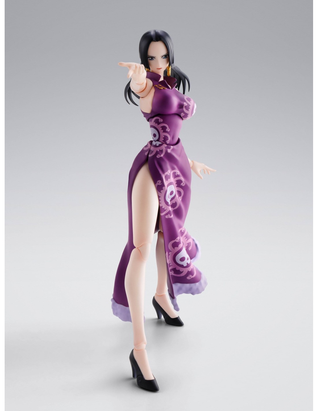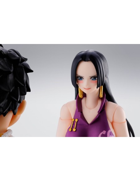 The S.H.Figuarts action figure series welcomes "BOA HANCOCK -MARINEFORD-"! From the TV anime ONE PIECE, Boa Hancock as she appeared during the Marineford Arc joins the line! In addition to an exceptional range of motion that can recreate Hancock's diverse actions, the set includes variety of expression parts and optional pieces to reproduce her "Mero Mero Mellow."
