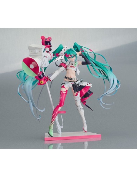 Il personaggio ufficiale del Progetto Hatsune Miku GT 2022, Racing Miku 2022 Ver., è ora una statuetta in scala 1/7! L'illustrazione originale di Racing Miku 2022 di Neco è stata accuratamente riprodotta con dettagli sorprendenti. La sua posa dinamica e il suo fisico atletico conquisteranno sicuramente i fan di Racing Miku. Non perdetevi nemmeno la bandiera sventolante e il suo sorriso smagliante! Assicuratevi di aggiungere la vivace Racing Miku alla vostra collezione!