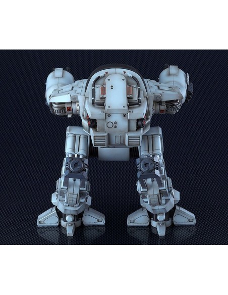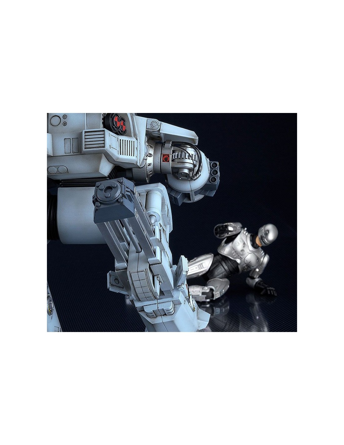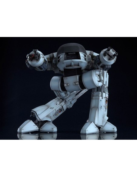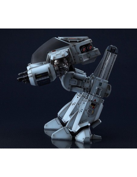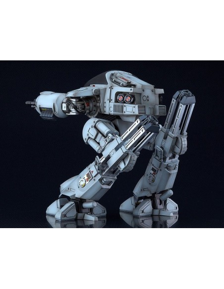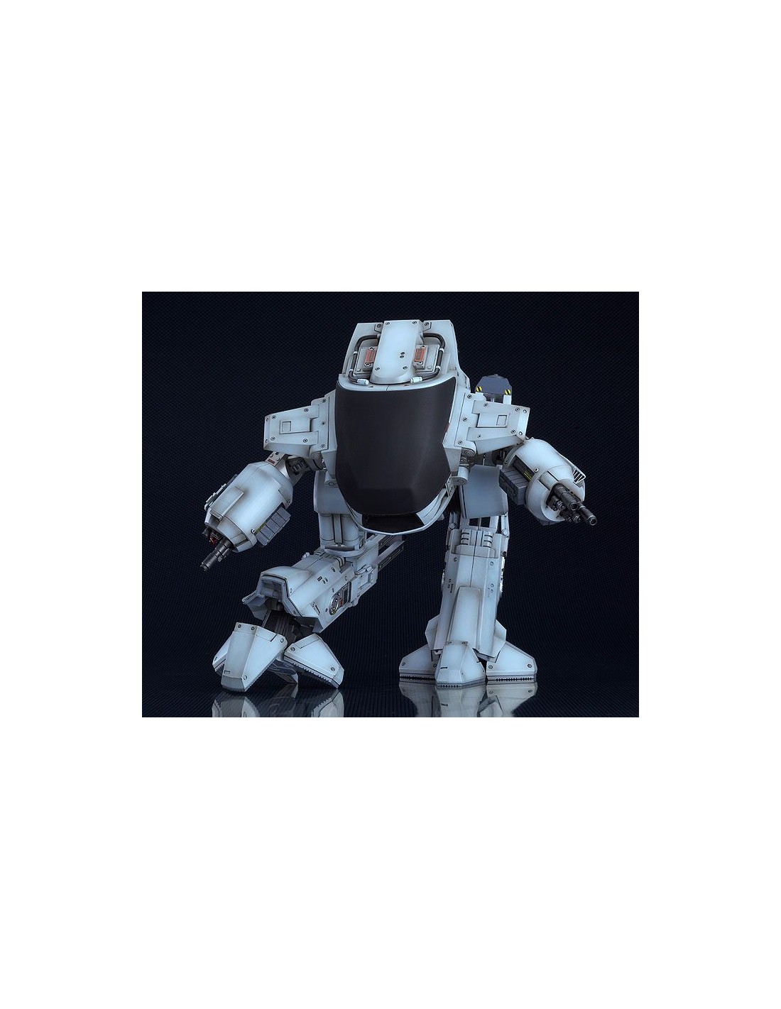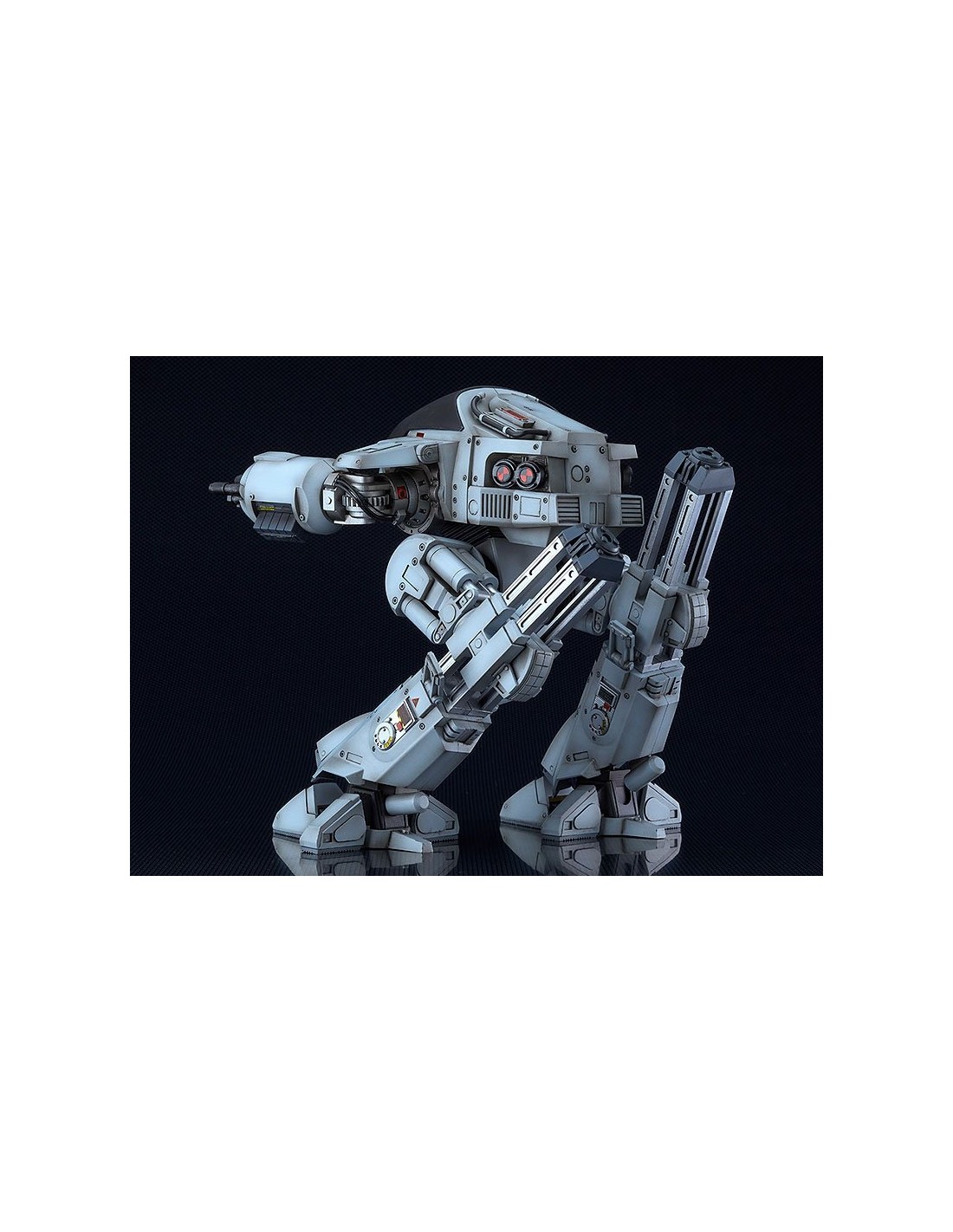 Dal film "ROBOCOP", ecco un modello in plastica MODEROID di ED-209, la macchina per il mantenimento della pace creata da Omni Consumer Products. Il modello è alto circa 20 cm una volta completato. Giunti, pistoni e guide di scorrimento sono tutti articolati, permettendo di ricreare pose intimidatorie e comiche.