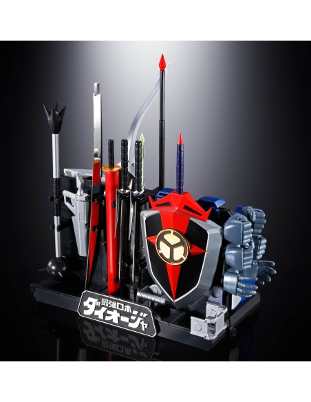 Il set include l’arsenale completo di DAIOJA, con lo Daioja Shield, lo Daioja Grap e il Daioja Beam Bowgun. Combinando le armi utilizzate dai tre robot è inoltre possibile ricreare la leggendaria Daioja Javelin, simbolo del suo massimo potere offensivo.
