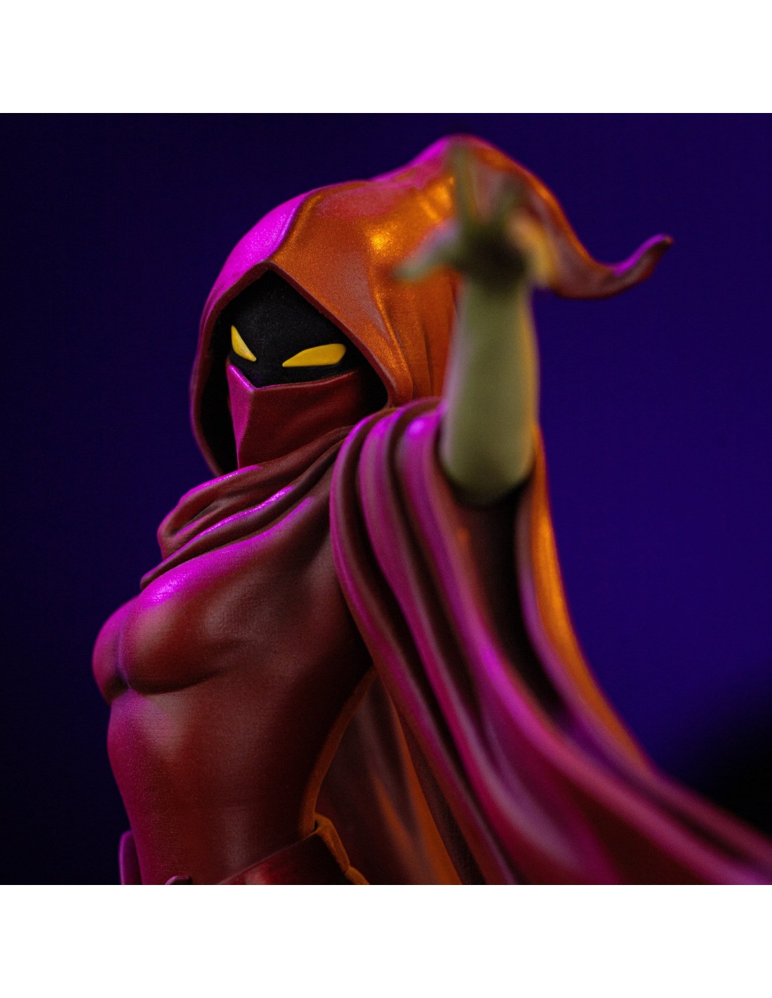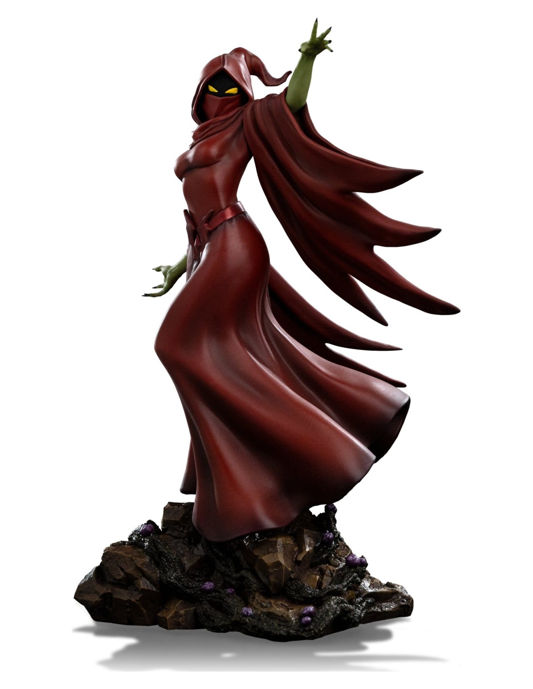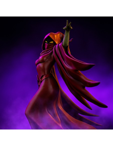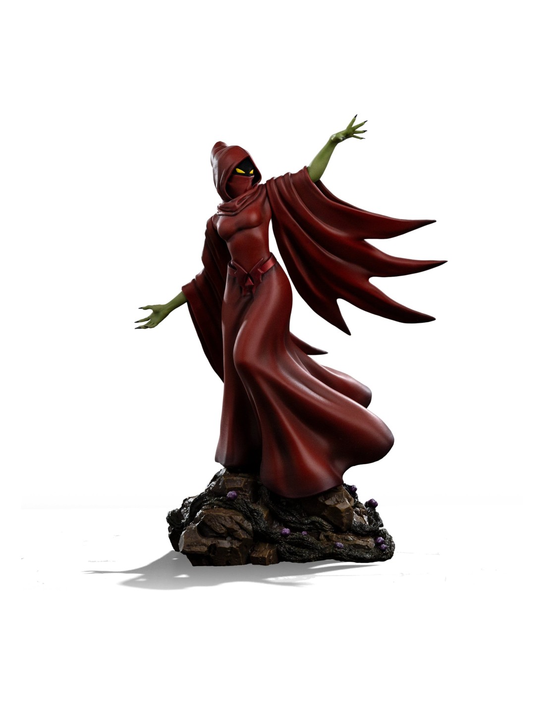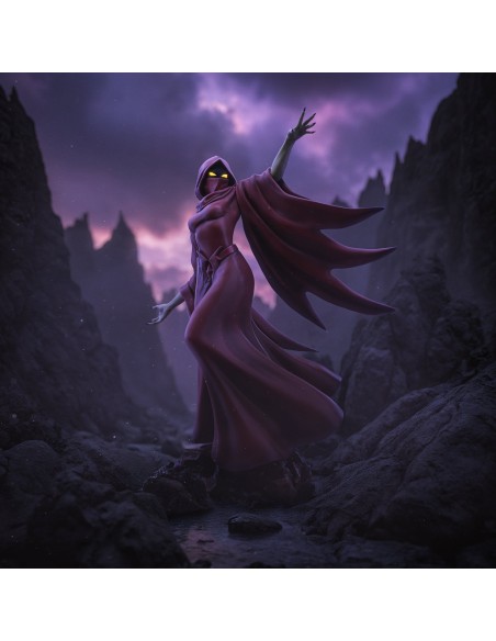 Prodotta da Iron Studios, questa statua in scala 1/10 in stile Art Scale sfoggia una scultura raffinata e finiture meticolosamente dipinte a mano. Dalle vesti fluenti e dal volto nascosto, alla posa drammatica e alla base a tema, ogni elemento è realizzato per trasmettere minaccia, intrigo e l'estetica dark fantasy che definisce gli incantatori più pericolosi di Eternia.