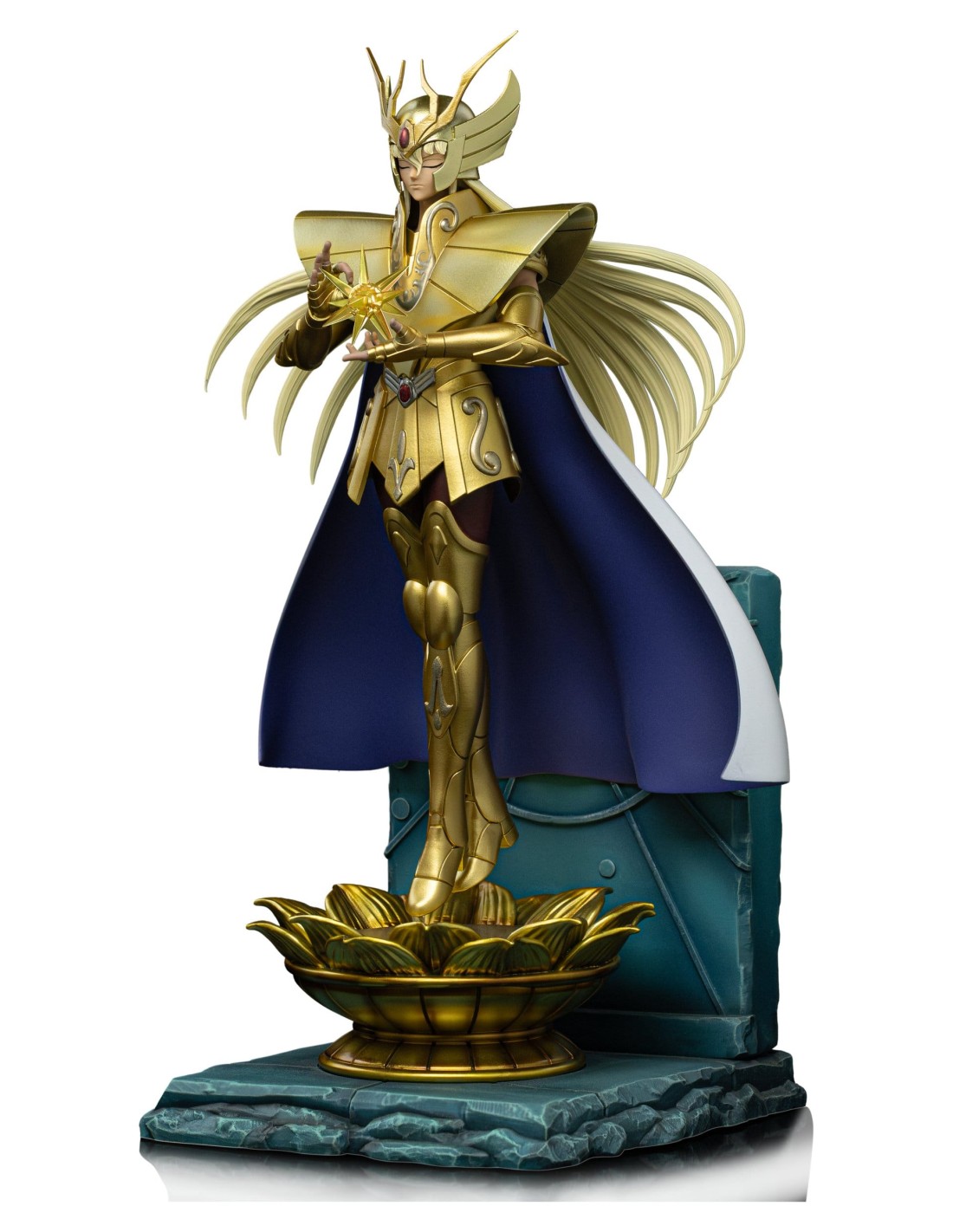 Serena, illuminata e dotata di un potere spirituale senza pari, questa statua dà vita a Shaka della Vergine in una rappresentazione maestosa e contemplativa. Ispirata al suo ruolo iconico in Saint Seiya, questa statua da collezione cattura il Cavaliere d'Oro della Vergine come l'uomo più vicino agli dei, incarnando saggezza, equilibrio interiore e una travolgente forza cosmica.