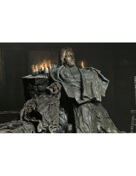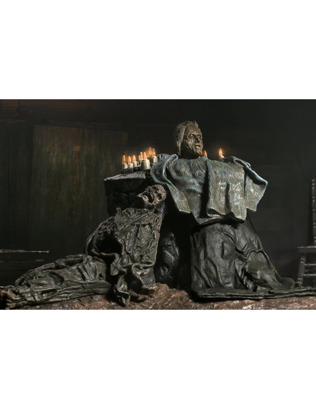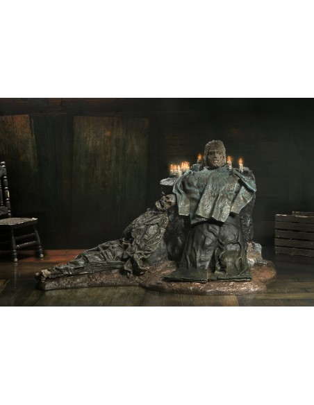 Questo inquietante diorama rende omaggio alla memoria di Pamela Voorhees, con la testa dell’amata madre di Jason esposta in un’ambientazione ricca di atmosfera, perfetta per ricreare scene iconiche della saga. Realizzato in scala e compatibile con le action figure NECA da 7 pollici (vendute separatamente), è progettato per integrarsi perfettamente nella tua collezione.