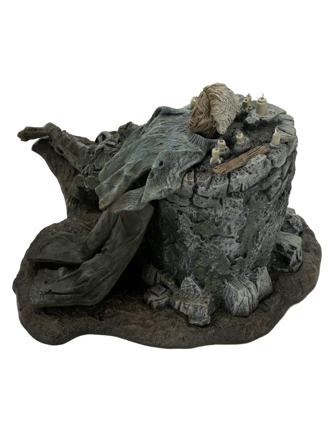 Il set include uno sfondo in cartoncino per l’esposizione e candele LED con effetto tremolante che aggiungono un tocco sinistro e realistico (richiede 2 batterie AAA non incluse). Pensato per diventare il vero punto focale della tua display horror, questo shrine è un must-have per ogni fan di Jason e dell’universo di Friday the 13th.