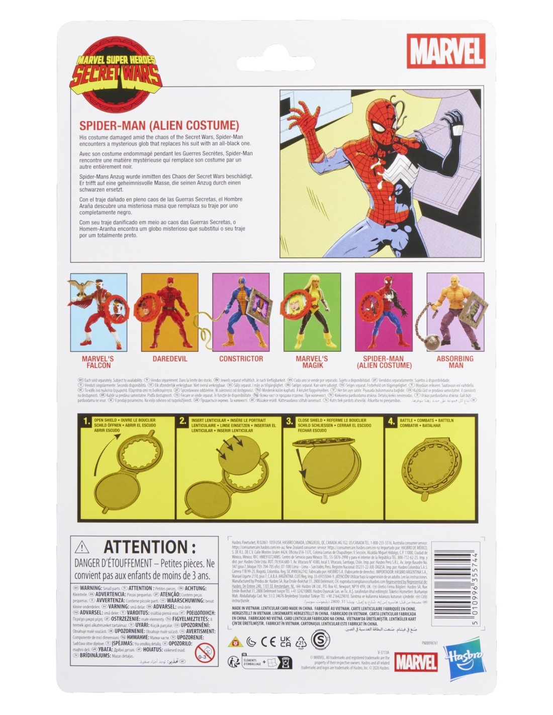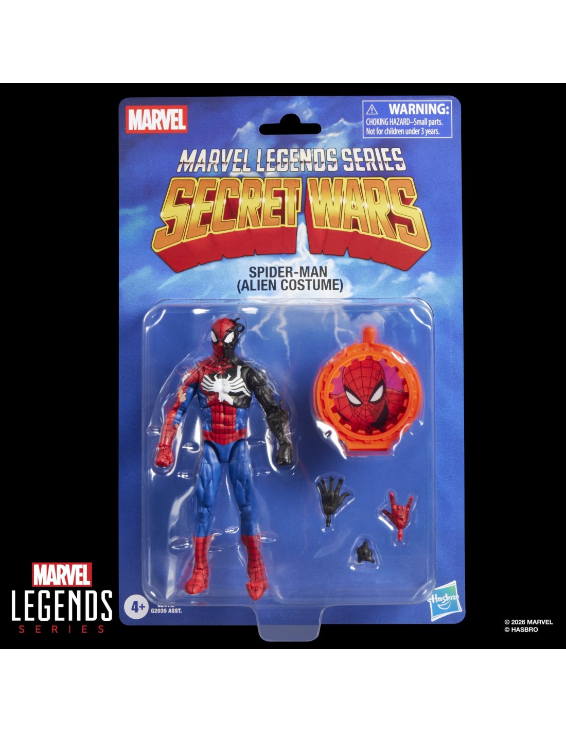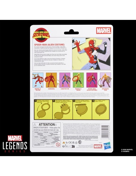 Questa action figure Hasbro Marvel Legends raffigura Spider-Man (Alien Costume), ispirato a “Marvel’s Secret Wars II” e ai fumetti Marvel, con una scultura accurata e finiture di alta qualità che catturano l’iconico design del personaggio.