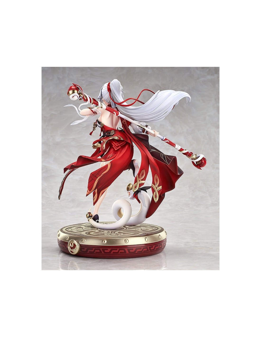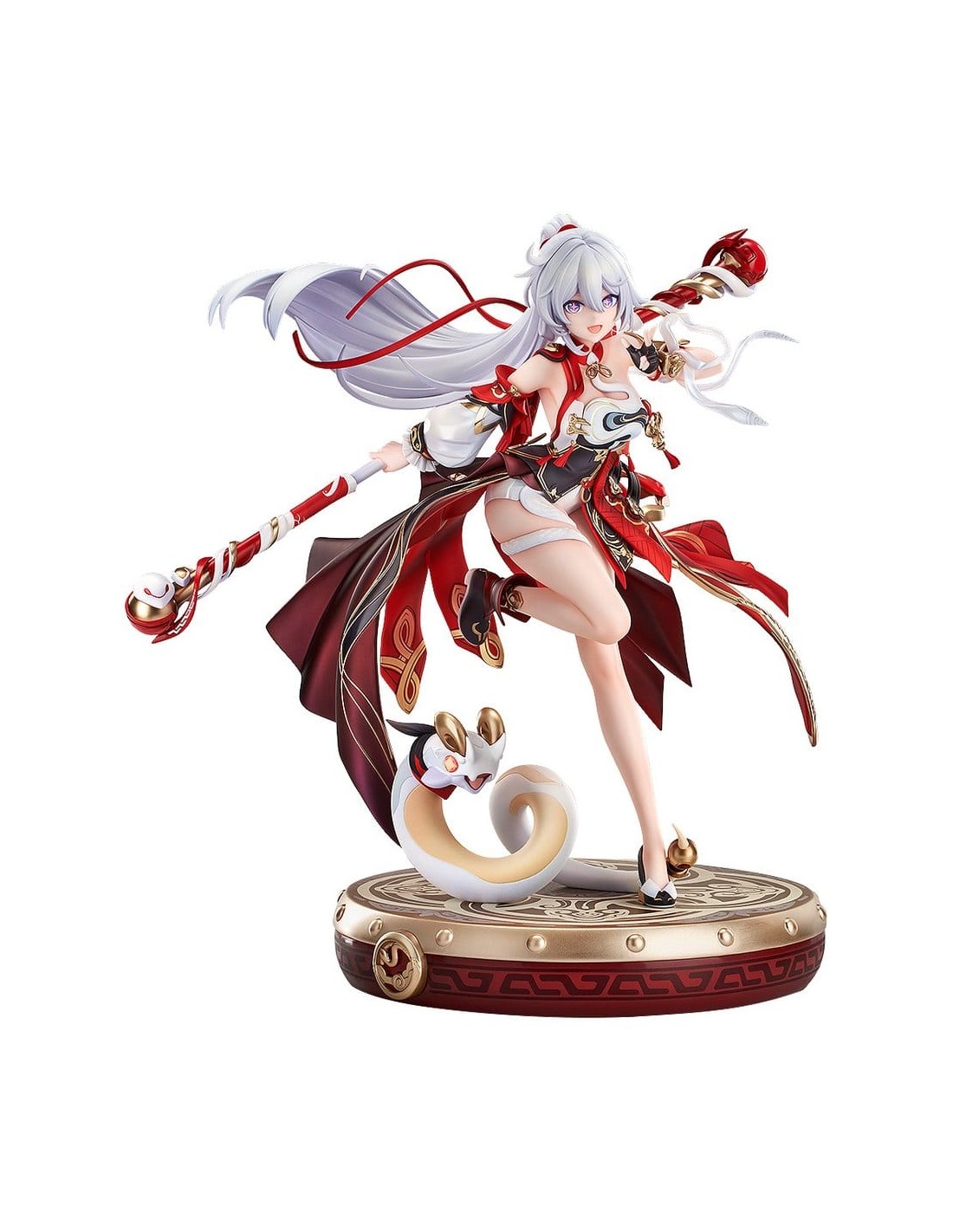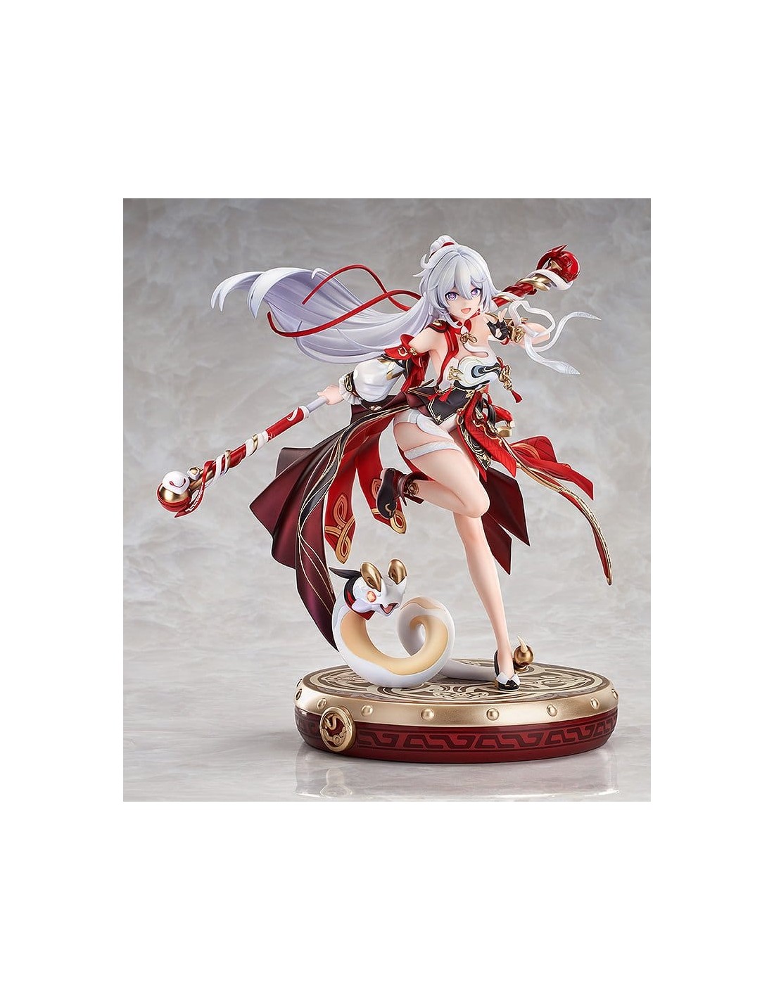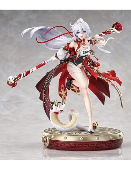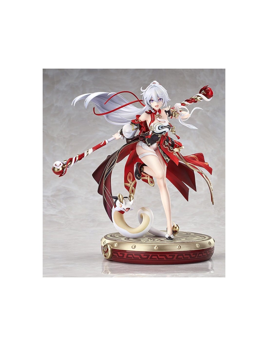 La figure cattura tutta l’energia e il dinamismo del personaggio grazie a una posa vivace e ricca di movimento, valorizzata dai lunghi capelli argentei e dal nastro fluente che creano un elegante effetto stratificato. Il design unisce motivi tradizionali cinesi a un’estetica armor moderna, esaltata da tecniche di verniciatura avanzate con finiture metalliche, effetto perlato e sofisticati gradienti cromatici.