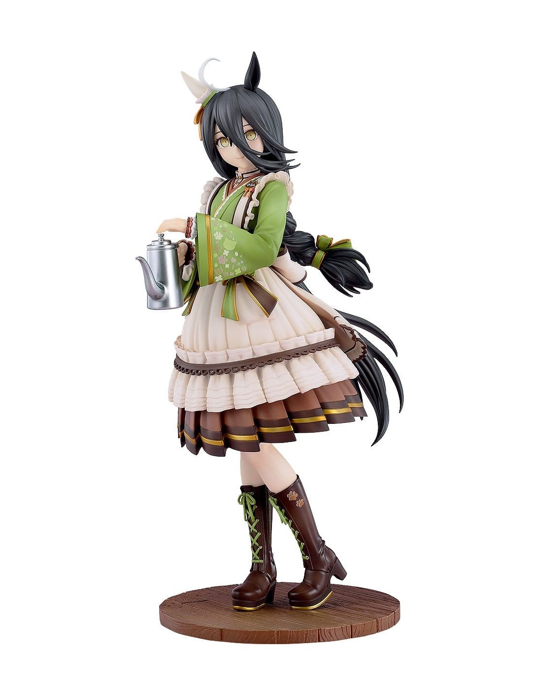 Il costume combina estetica giapponese e occidentale, con kimono verde matcha, grembiule con volant e stivaletti, catturando perfettamente il fascino delicato e adorabile della Umamusume. Particolari come la texture morbida del grembiule, i capelli accuratamente intrecciati e i motivi di gatto sul vestito sono stati ricreati con grande attenzione ai dettagli, per un risultato realistico e scenografico.