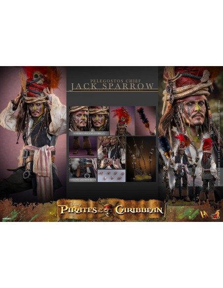 HOT TOYSPirates of the Caribbean: Dead Man's Chest Action DX Figure 1/6 Pelegostos Chief Jack Sparrow 30 cm
