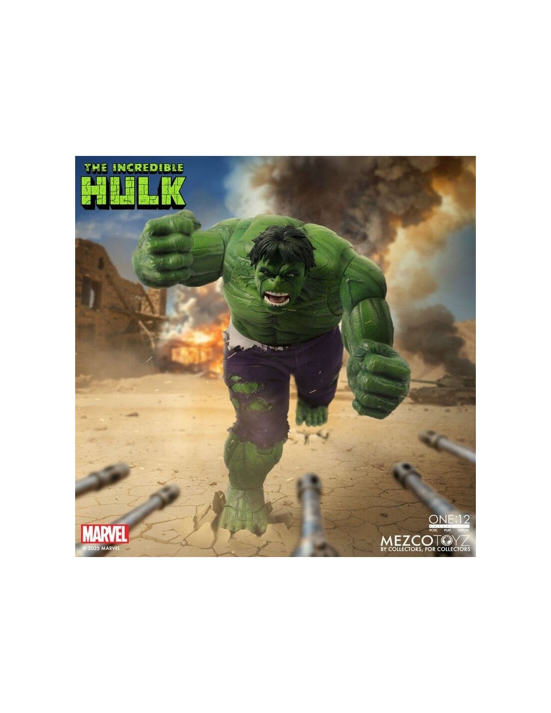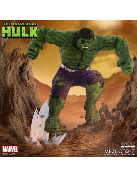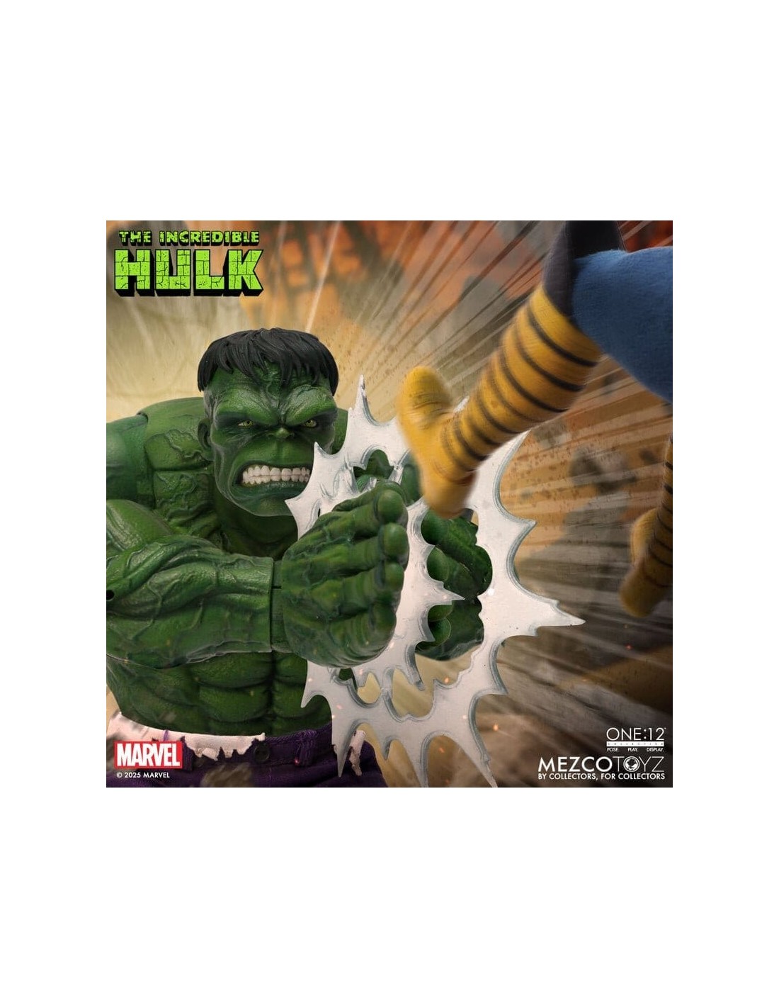 Direttamente dall’universo Marvel Comics, l’Incredible Hulk entra nella prestigiosa linea One:12 Collective con una spettacolare action figure alta circa 19 cm. Questa versione di Hulk è realizzata su un nuovo corpo iper-articolato progettato per esprimere tutta la forza e la furia del gigante verde.