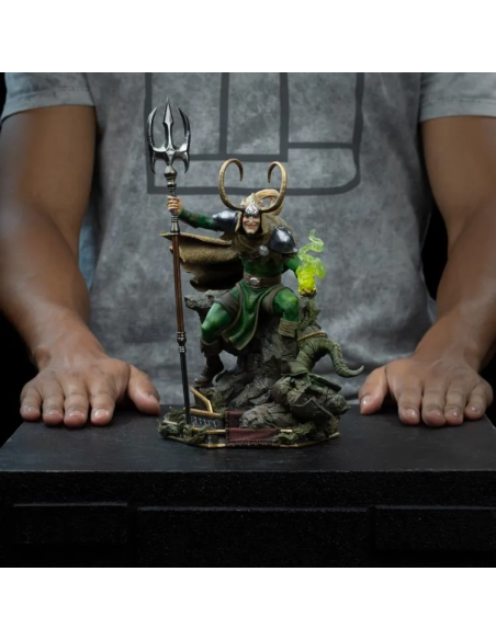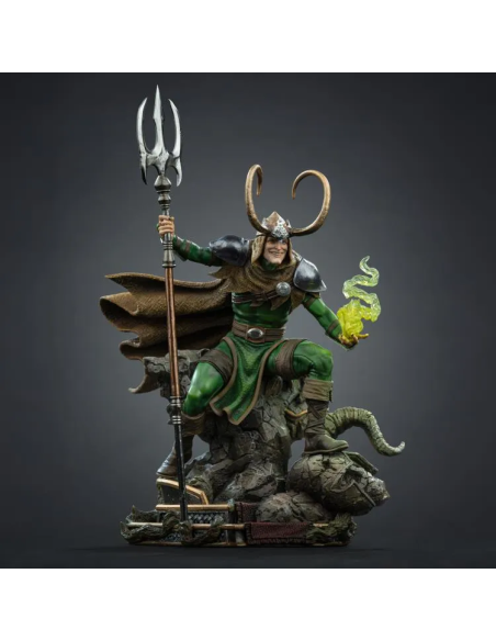 Scopri la spettacolare Loki Statue 1/10 Art Scale Iron Studios, dedicata al leggendario Dio dell’Inganno dell’universo Marvel.