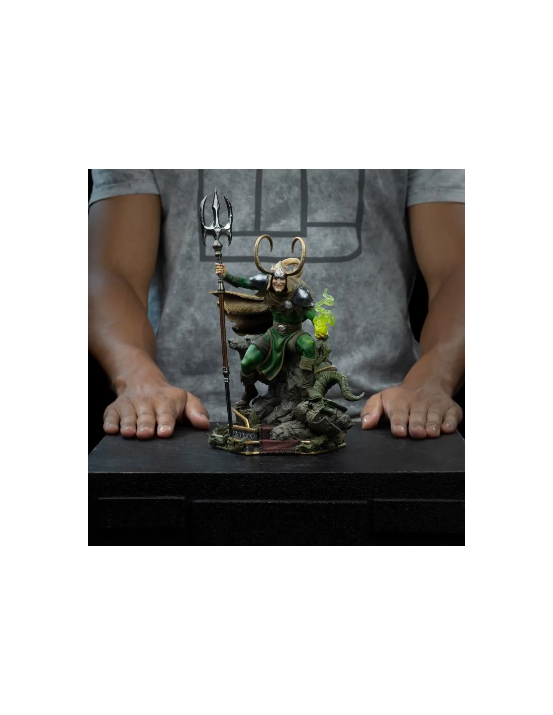 Una statua da collezione che cattura tutta l’astuzia e il carisma del fratello di Thor con una composizione scenica ricca di dettagli.