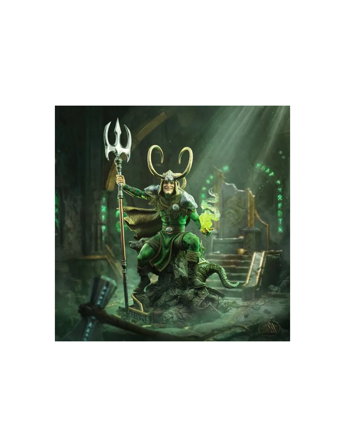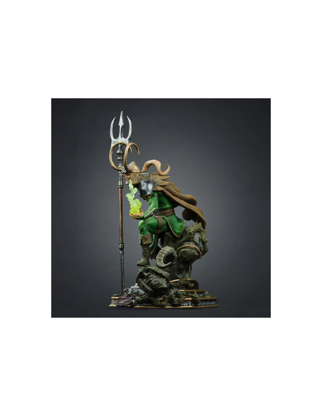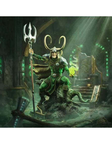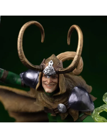 Una statua da collezione che cattura tutta l’astuzia e il carisma del fratello di Thor con una composizione scenica ricca di dettagli.