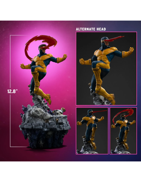 La scultura presenta un eccellente livello di dettaglio: il costume iconico degli X-Men è riprodotto con grande precisione, mentre la pittura premium e le finiture curate valorizzano ogni elemento della composizione. Nella confezione è inoltre inclusa una testa extra intercambiabile, che permette di esporre il personaggio con un look alternativo.