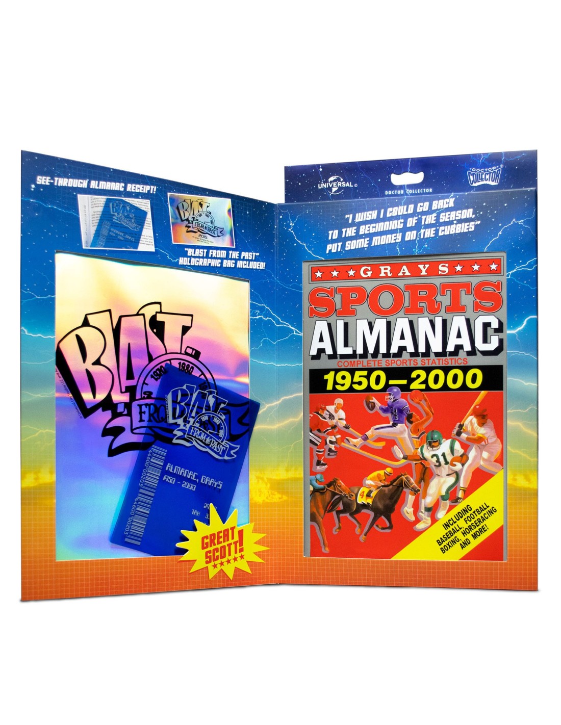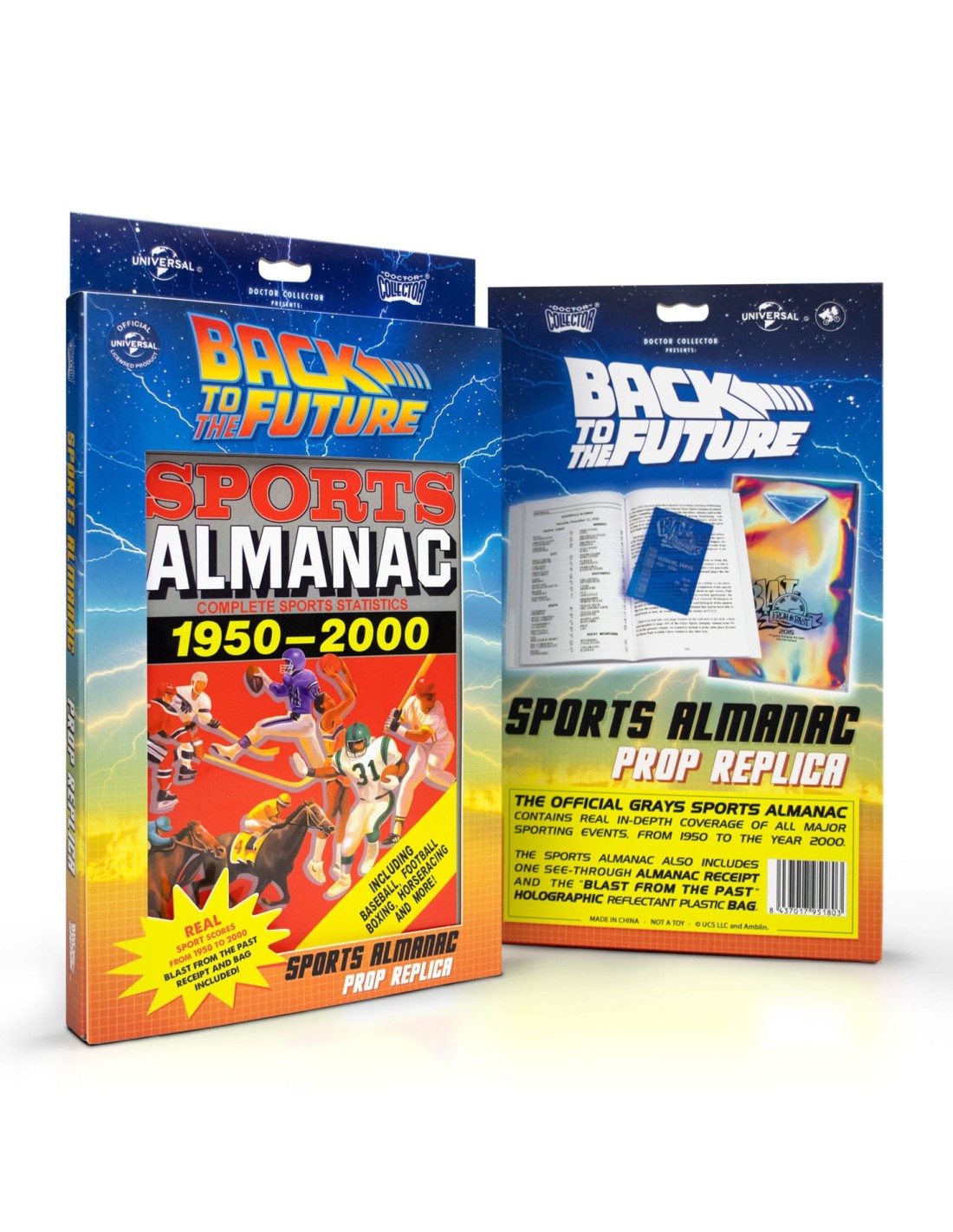 Assicuratevi l'autentico e ufficiale Almanacco Sportivo Grays prima di Tannen! È la prima volta nella storia che questo Almanacco viene pubblicato con contenuti reali e ufficiali! È il complemento perfetto per completare i vostri "Ricordi di Viaggio nel Tempo" e contiene un'ampia raccolta di risultati sportivi che coprono tutte le discipline della seconda metà del XX secolo (incluso lo slamball). Inoltre, include la borsa olografica e il biglietto d'acquisto di "Blast from the Past" in regalo! Sappiamo che state pensando di tornare all'inizio della stagione e scommettere sui Cubs, ma vi consigliamo di conservare questo almanacco come oggetto da collezione.