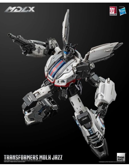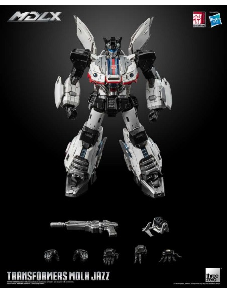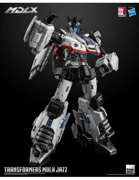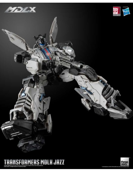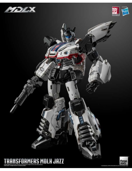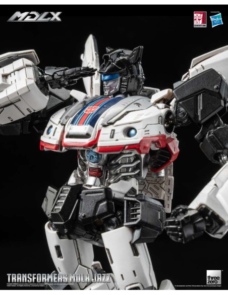 Transformers MDLX Jazz è alto circa 15 cm (6"), con circa 46 punti di articolazione e una struttura in metallo pressofuso. Gli accessori includono cinque set di mani intercambiabili, un fucile fotonico e un rampino. Il rampino è dotato di un cavo retrattile completamente funzionante, che consente di estendere e riavvolgere il gancio, migliorando l'esperienza interattiva.
