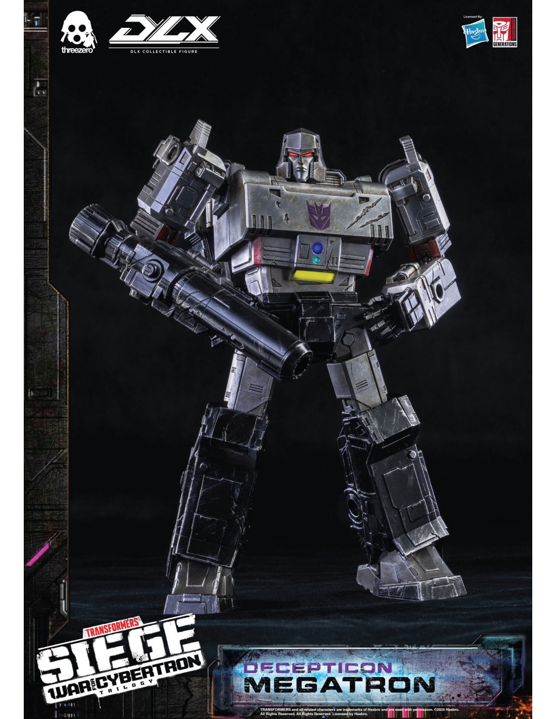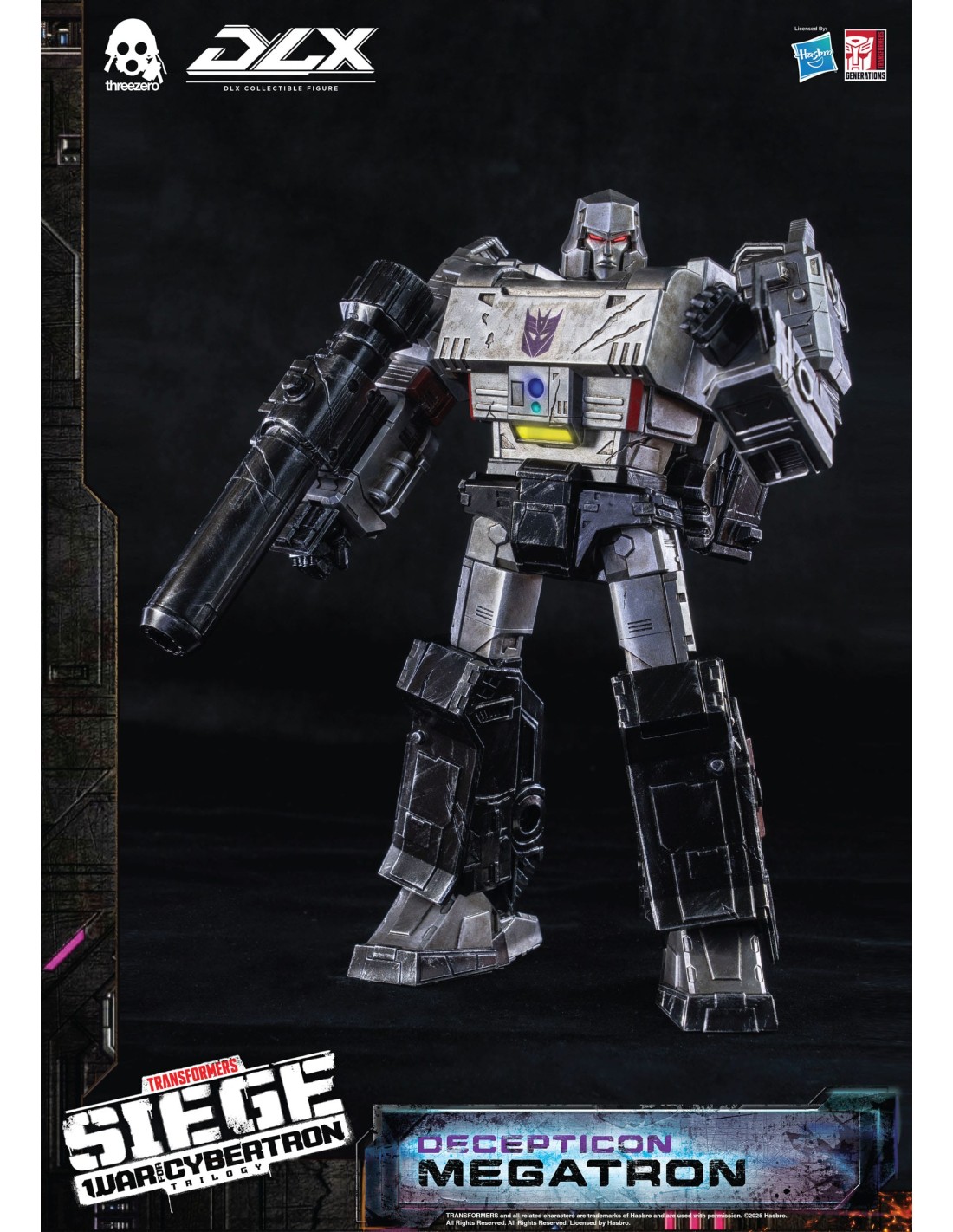 Hasbro e threezero sono lieti di presentare il temuto leader dei Decepticon Megatron come prossimo prodotto TRANSFORMERS: WAR FOR CYBERTRON TRILOGY nella serie di figure da collezione Transformers DLX! Le figure da collezione DLX presentano intricati design dei Transformers in scala ridotta con un valore di produzione ad alta fedeltà. Con il suo esclusivo design del telaio in metallo pressofuso, DLX non solo fornisce una gamma avanzata di articolazioni, ma migliora anche notevolmente il peso e la durata. Insieme all'applicazione di vernice dettagliata e invecchiata di threezero, si ottiene una notevole somiglianza nell'abbinamento dei personaggi come si vedono nei media originali. Con un'altezza di 10 pollici (25,4 cm), la figura da collezione Transformers: War for Cybertron Trilogy DLX Megatron presenta circa 50 punti di articolazione, un telaio in metallo pressofuso e occhi e corpo illuminati a LED. Gli accessori includono il cannone a fusione D50-R35, il lanciatore laser telescopico HPR, un totale di cinque paia di mani intercambiabili e un supporto d'azione DLX per varie pose espressive. I due accessori per armi possono essere combinati, formando l'impressionante mega-lanciatore NFM Particle Beam. Come altre figure della serie DLX, Megatron presenta anche una struttura in metallo pressofuso per una maggiore giocabilità, con un'applicazione di vernice finemente dettagliata che mette in mostra l'aspetto consumato dalla guerra come visto nella trilogia Transformers: War for Cybertron. Caratteristiche: - Con licenza ufficiale Hasbro e TakaraTomy - Circa 10 pollici di altezza (25,4 cm) - 50 punti di articolazione - Parti in metallo pressofuso - Occhi e corpo illuminati a LED Accessori: - Un cannone a fusione D50-R35 - Un lanciatore Laserstrike telescopico HPR - Cinque paia di mani intercambiabili: pugni, rilassate, d'azione, con cannone a fusione D50-R35 e con lanciatore Laserstrike telescopico HPR. - Un supporto d'azione con base LED CARATTERISTICHE - Occhi * Gli occhi richiedono 4 batterie AG13, batterie non incluse In fase di sviluppo/non definitiva. Potrebbero differire dalla versione finale.