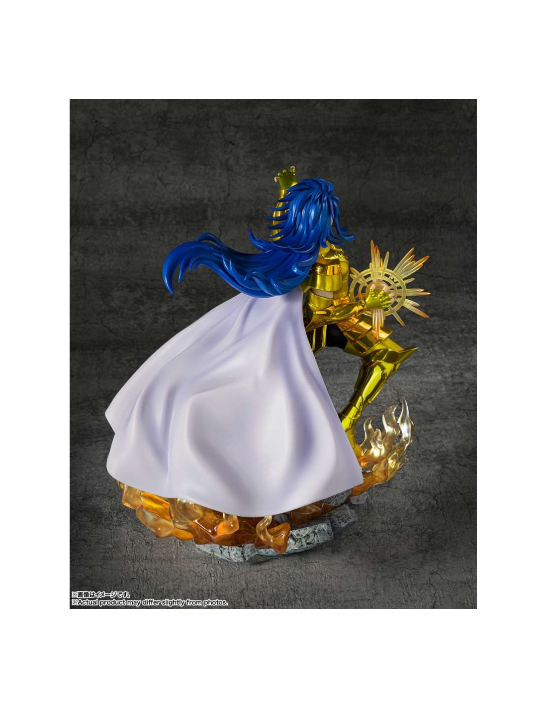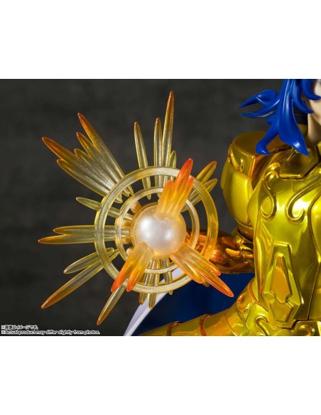 Con i suoi circa 21 cm, questa figure riesce a trasmettere una scena completa senza risultare ingombrante, rendendola perfetta sia come pezzo singolo sia come parte di una lineup dei Cavalieri d’Oro.