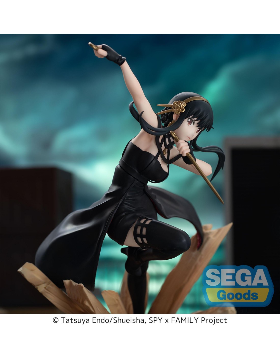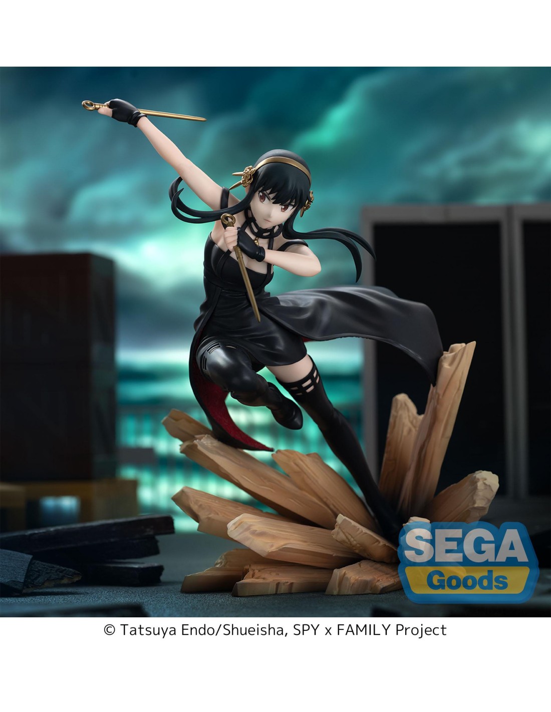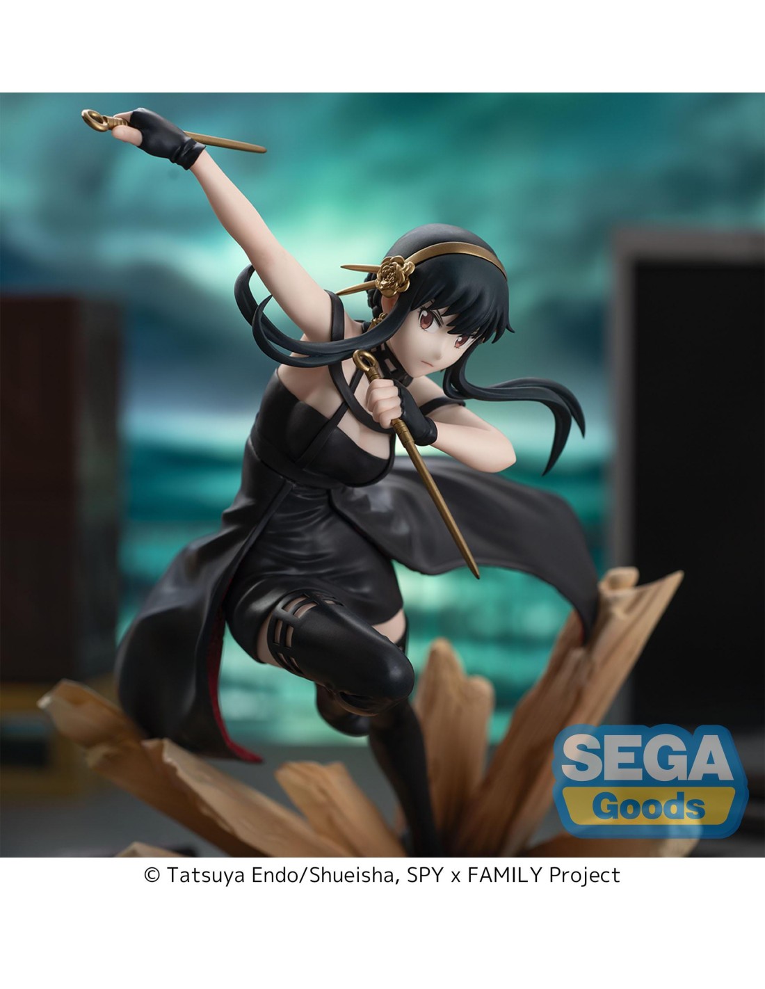 La Yor Forger Thorn Princess Luminasta Figure Spy x Family SEGA cattura un momento d’azione con posa dinamica, armi iconiche e base scenica.