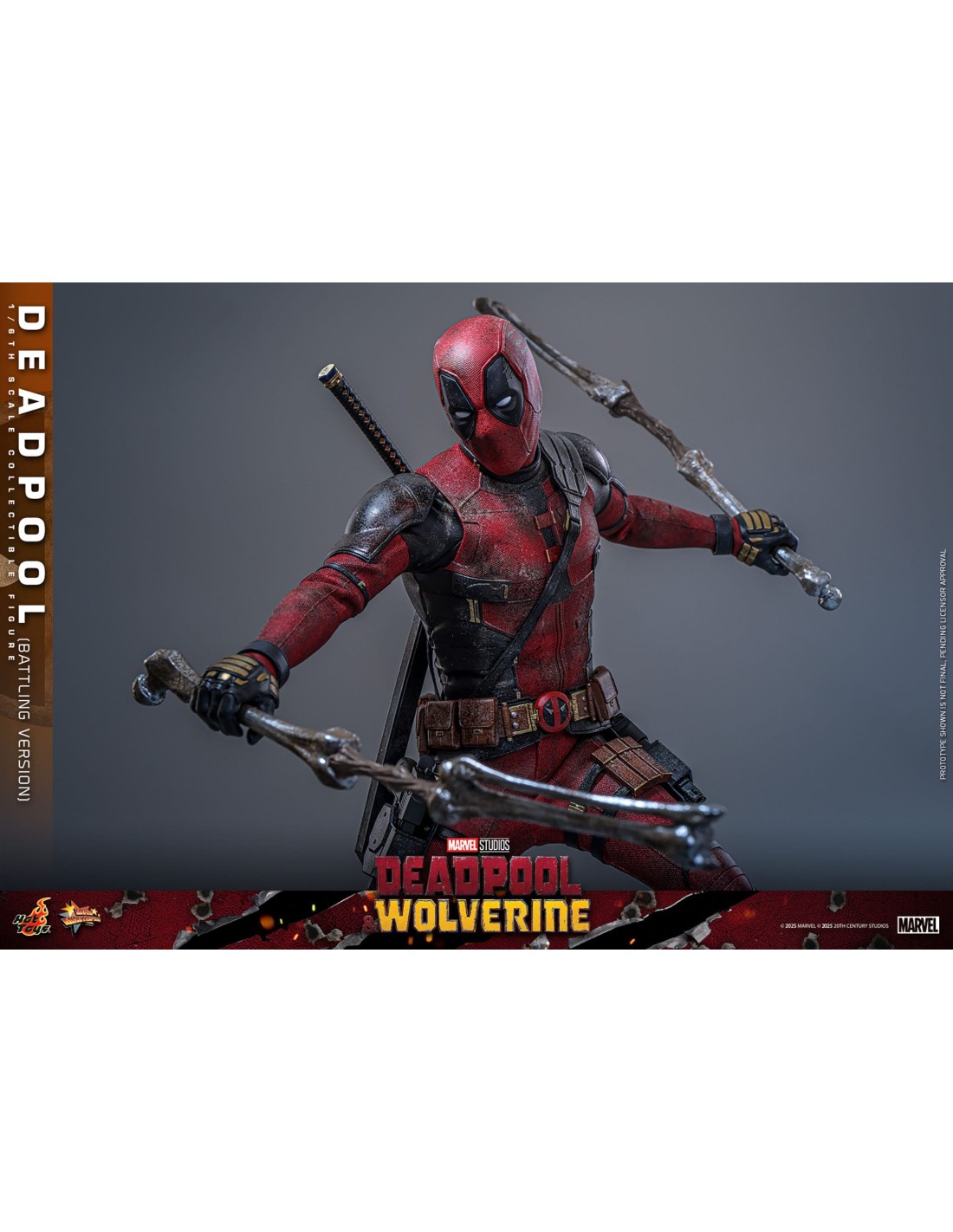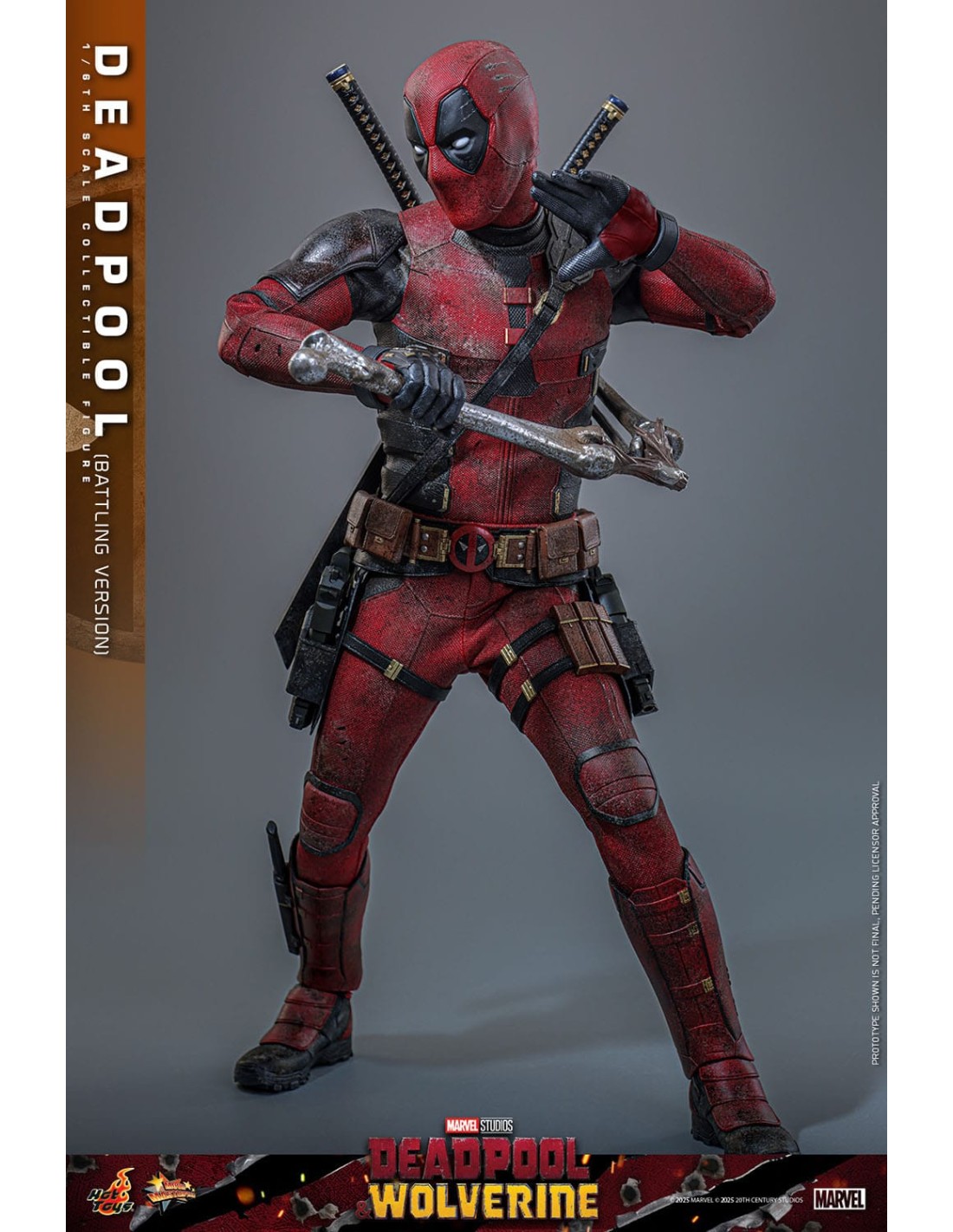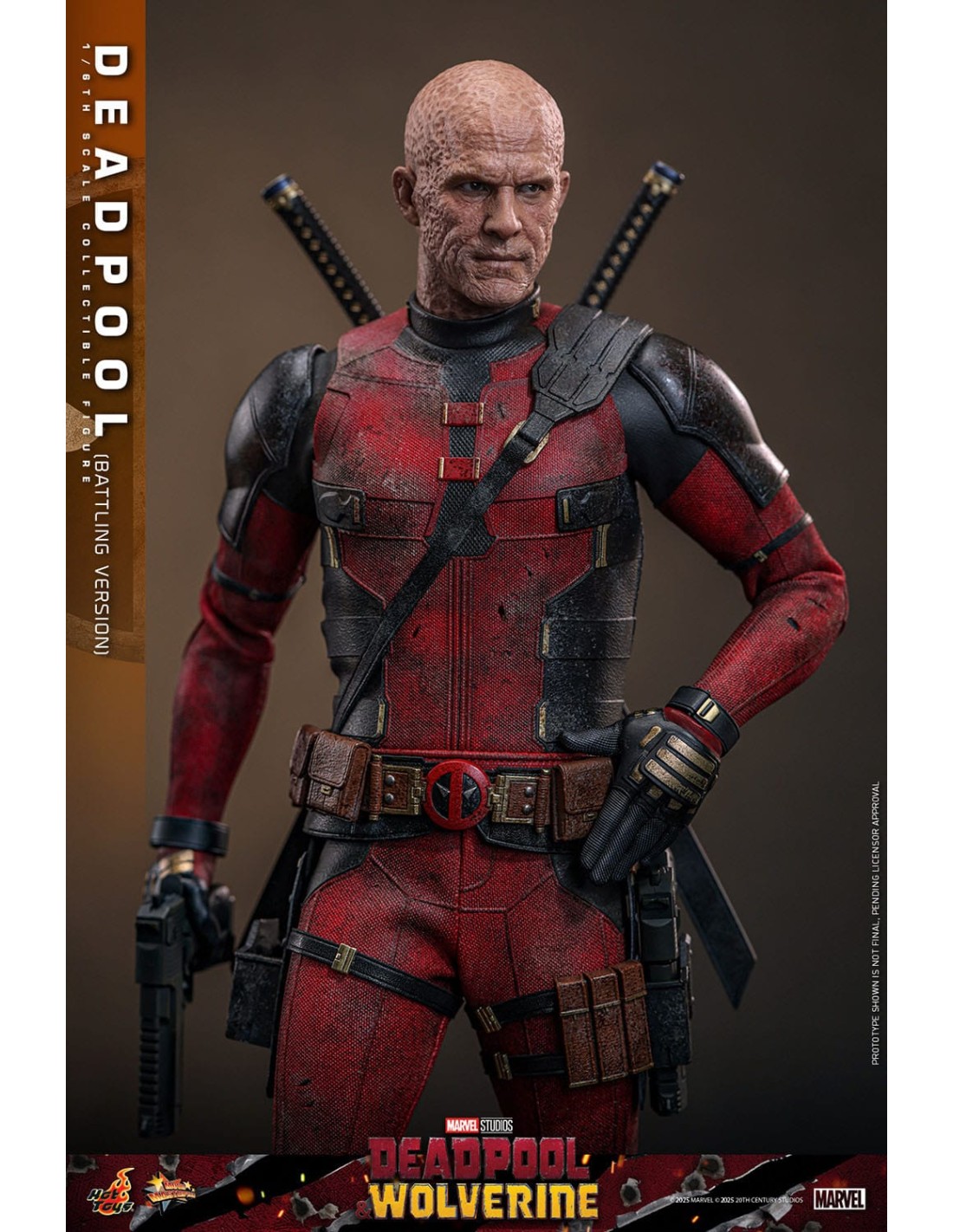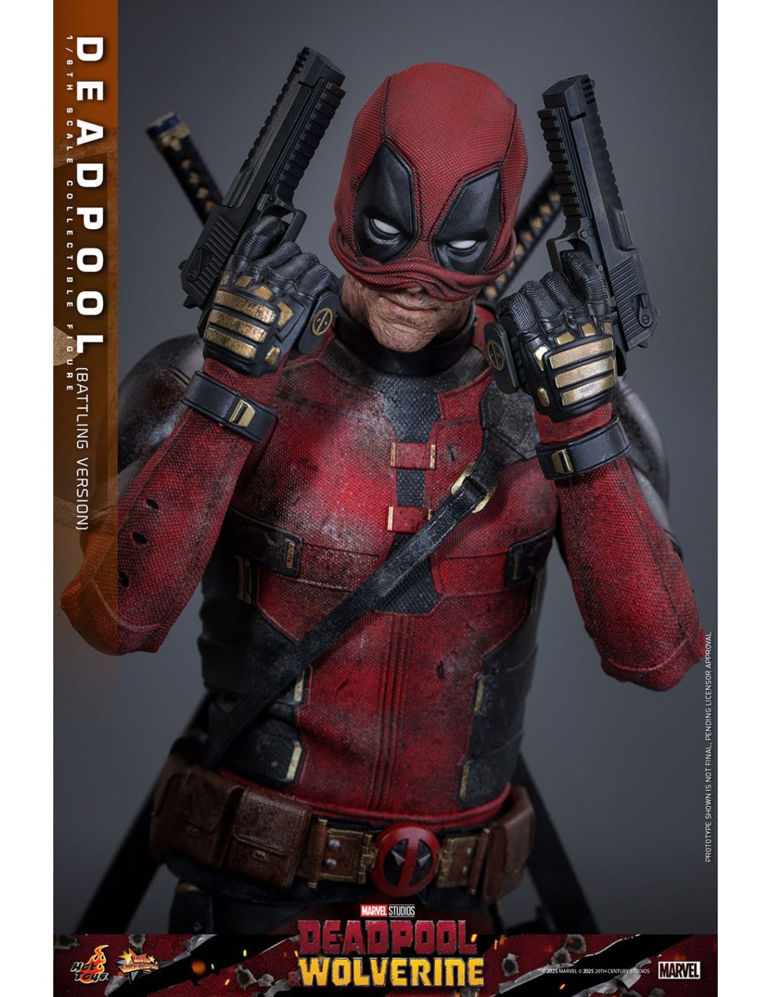 La Hot Toys Deadpool Battling Version in scala 1/6 è una rappresentazione altamente scenografica del celebre anti-eroe Marvel, direttamente ispirata agli eventi del film Deadpool & Wolverine. Questa versione si distingue per un approccio fortemente cinematografico, catturando Deadpool nel pieno dell’azione, con un look battle-damaged che enfatizza il realismo e la narrazione visiva.