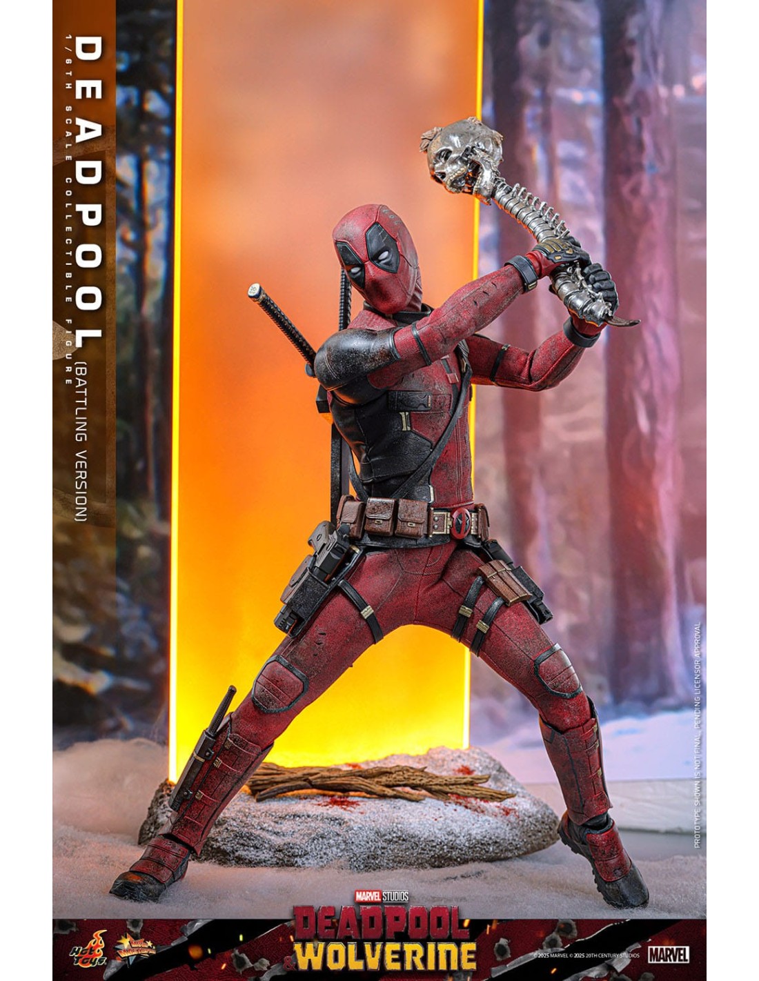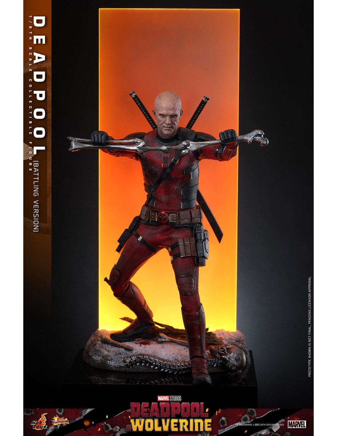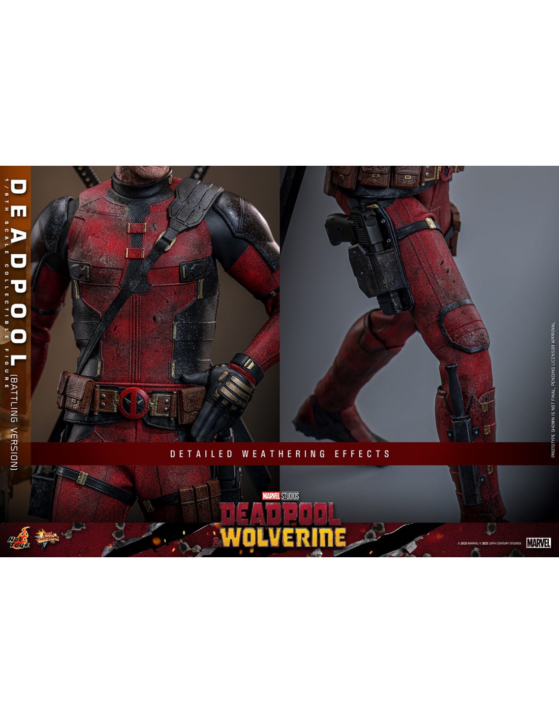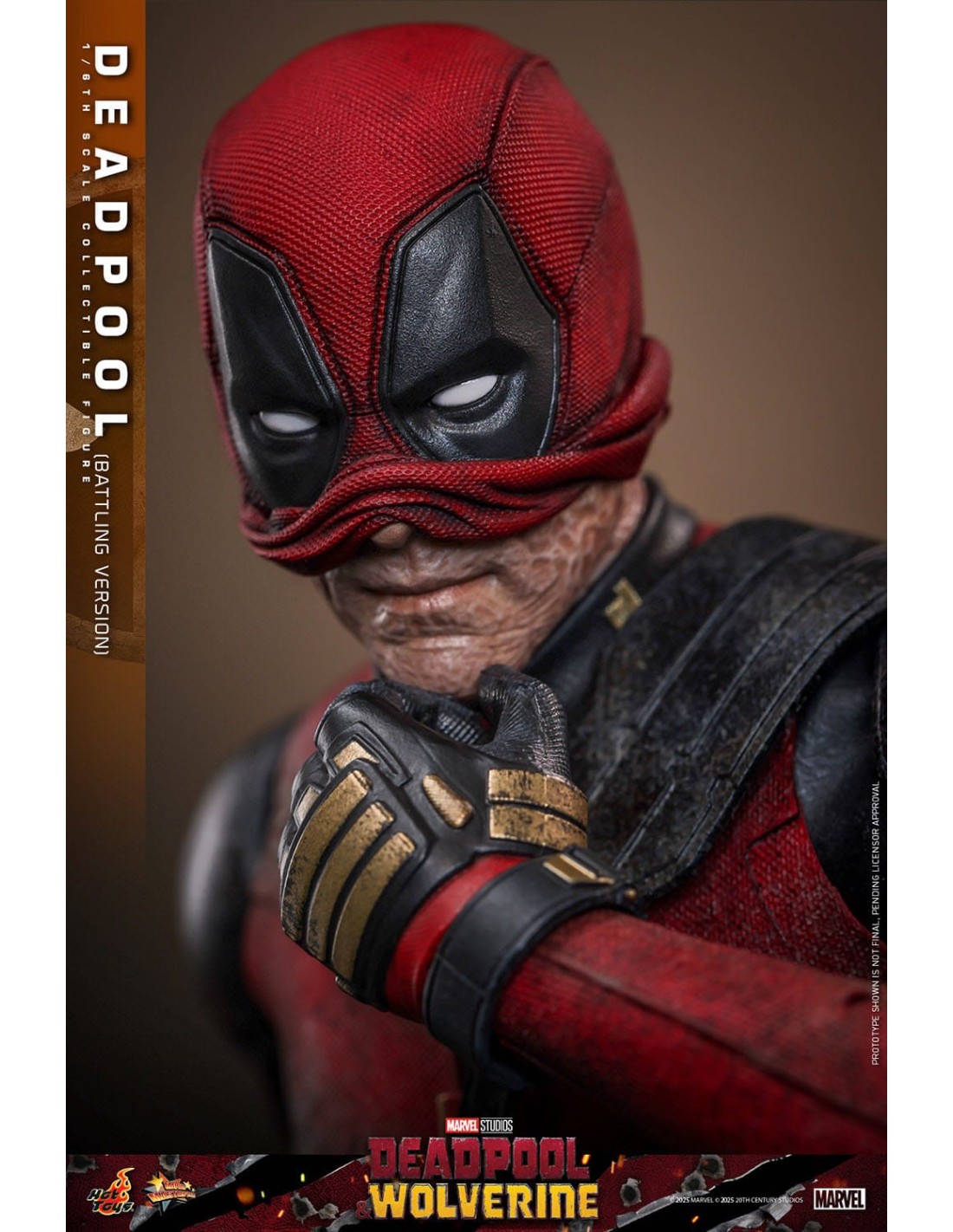 La Hot Toys Deadpool Battling Version in scala 1/6 è una rappresentazione altamente scenografica del celebre anti-eroe Marvel, direttamente ispirata agli eventi del film Deadpool & Wolverine. Questa versione si distingue per un approccio fortemente cinematografico, catturando Deadpool nel pieno dell’azione, con un look battle-damaged che enfatizza il realismo e la narrazione visiva.
