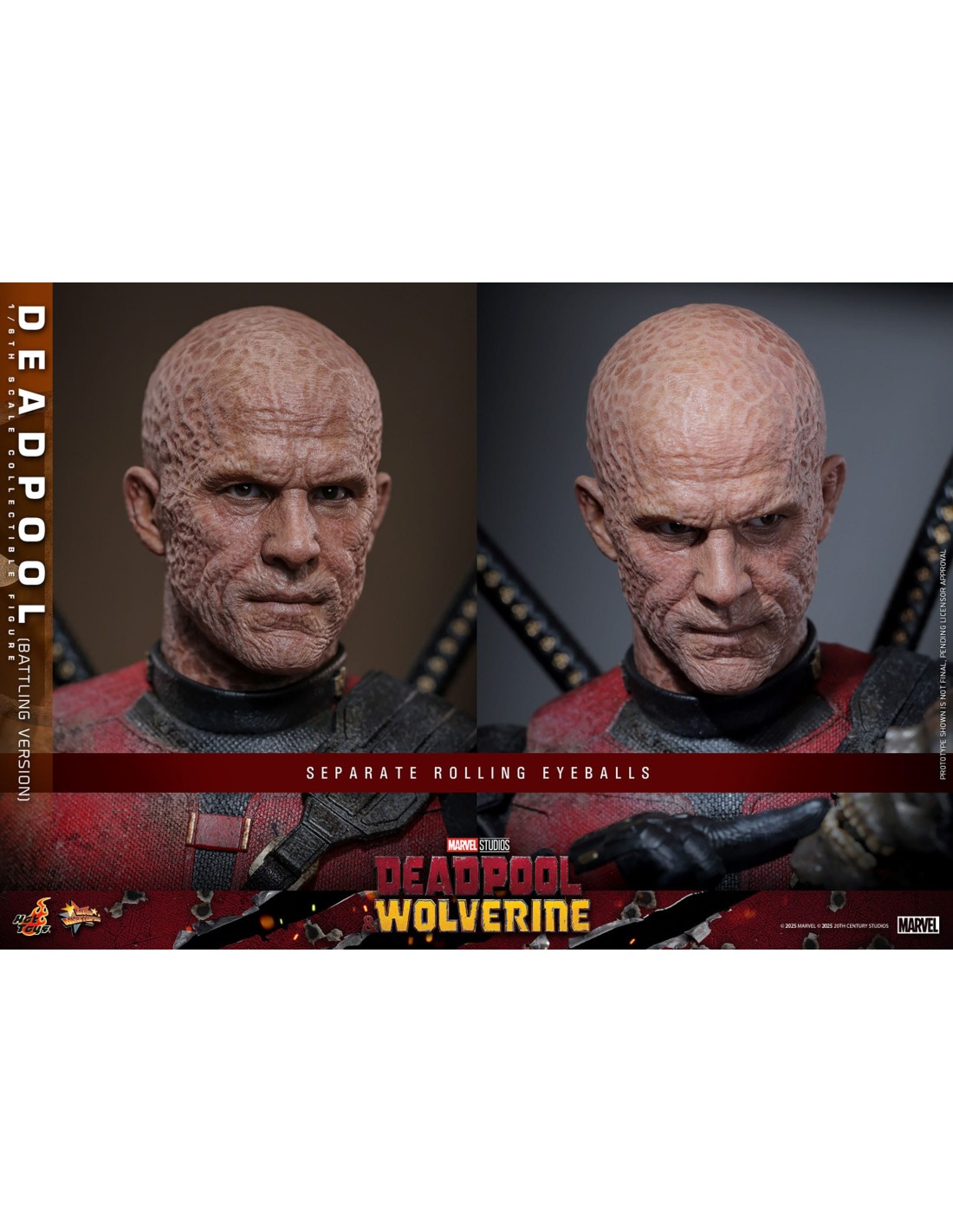 Uno degli elementi distintivi è la presenza di tre head sculpt intercambiabili: una con il volto di Wade Wilson, una parzialmente mascherata e una completamente coperta. Questa varietà consente di rappresentare diverse espressioni e momenti del personaggio, aumentando il valore espositivo della figure.